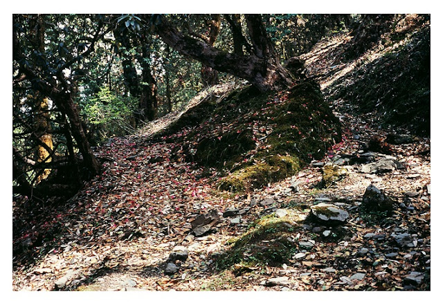 | Strewn with leaf litter, the trail to Wan |
